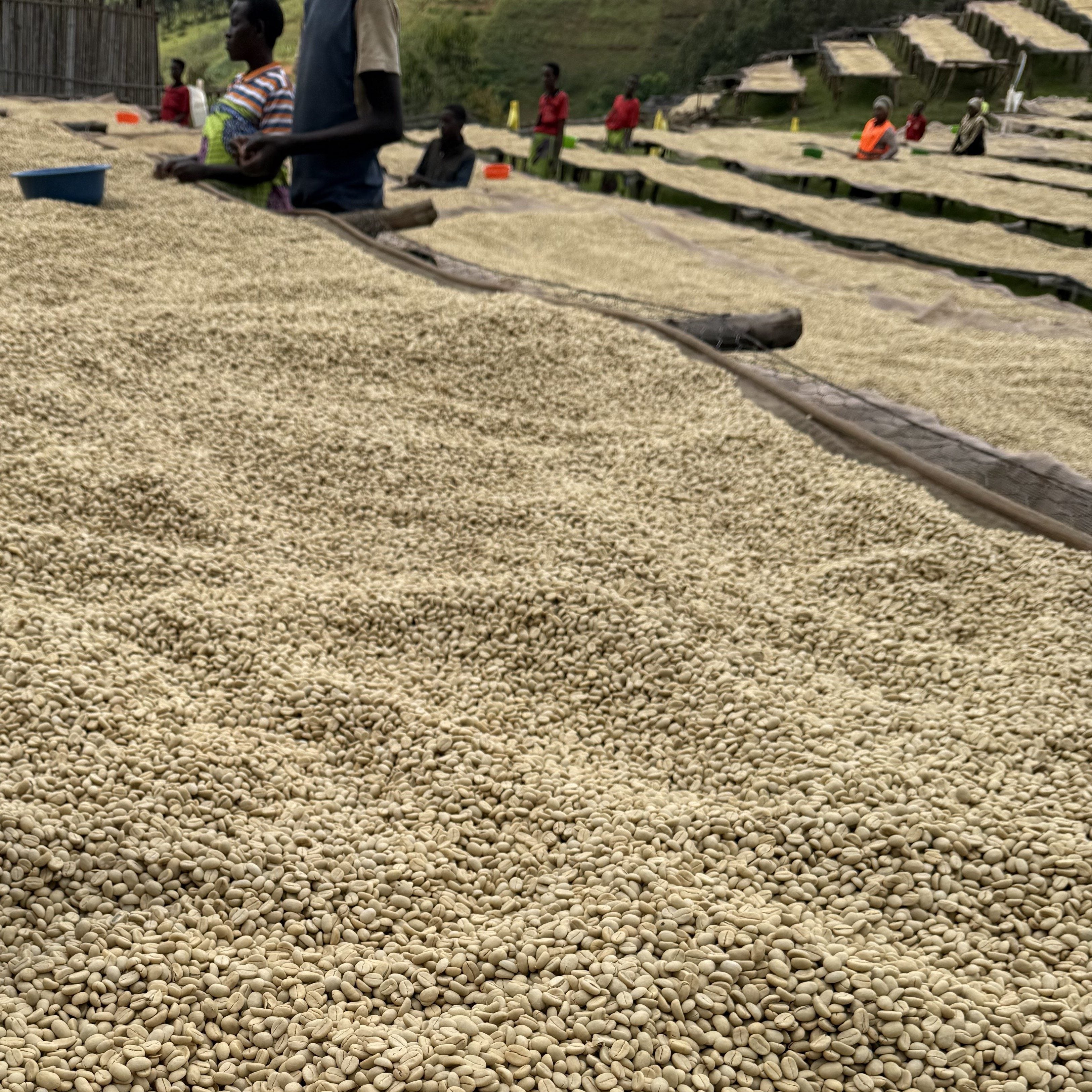 ニャギシルコーヒーウォッシングステーションは、ブルンジ北東部ムインガ県に位置しています。ムインガはブルンジ国内でもコーヒーの生産量が多い地域ですが、ウォッシングステーションの数はまだ限られており、大きなポテンシャルを秘めたエリアとして近年世界的に注目を集めています。 首都ブジュンブラから車で約4時間。周囲には、日本人にとってどこか懐かしさを感じるような、緑豊かな田園風景が広がっています。なだらかな地形と豊富な水資源に恵まれており、コーヒーの精製に適した環境が整っています。また日差しがよく届くため乾燥が比較的スムーズに進むことも、この地域の特徴のひとつです。