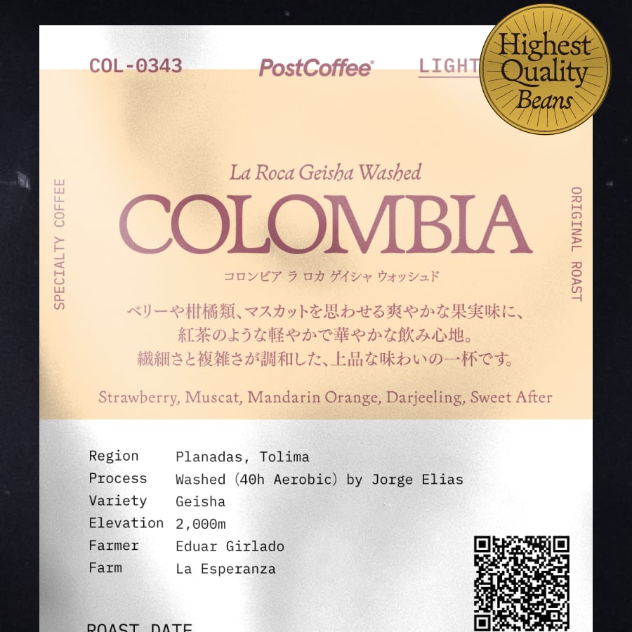 「Origin Trip Box」で登場したゲイシャを再販いたします!このゲイシャは、6月にコロンビアを訪れた際に、生産者エドワルド本人から直接購入した特別なロットです。コロンビアではよくあることなのですが、コーヒーチェリーを栽培した人と、プロセス(精製)を担当した人が異なるケースがあり、少しややこしいですよね(笑)。このゲイシャもその一例で、「ラ ロカ ステート」を運営するホルへのもとに所属する「エスペランサ農園」で、エドワルドが栽培したゲイシャをホルへがプロセスしています。現地では、エドワルドのゲイシャやピンクブルボンのチェリーを実際に食べてみたのですが、その際に感じたフローラルさと際立つ甘さには本当に驚かされました。プラナーダスという素晴らしい地域が生み出すテロワールを、ぜひカップの中で体験してください。