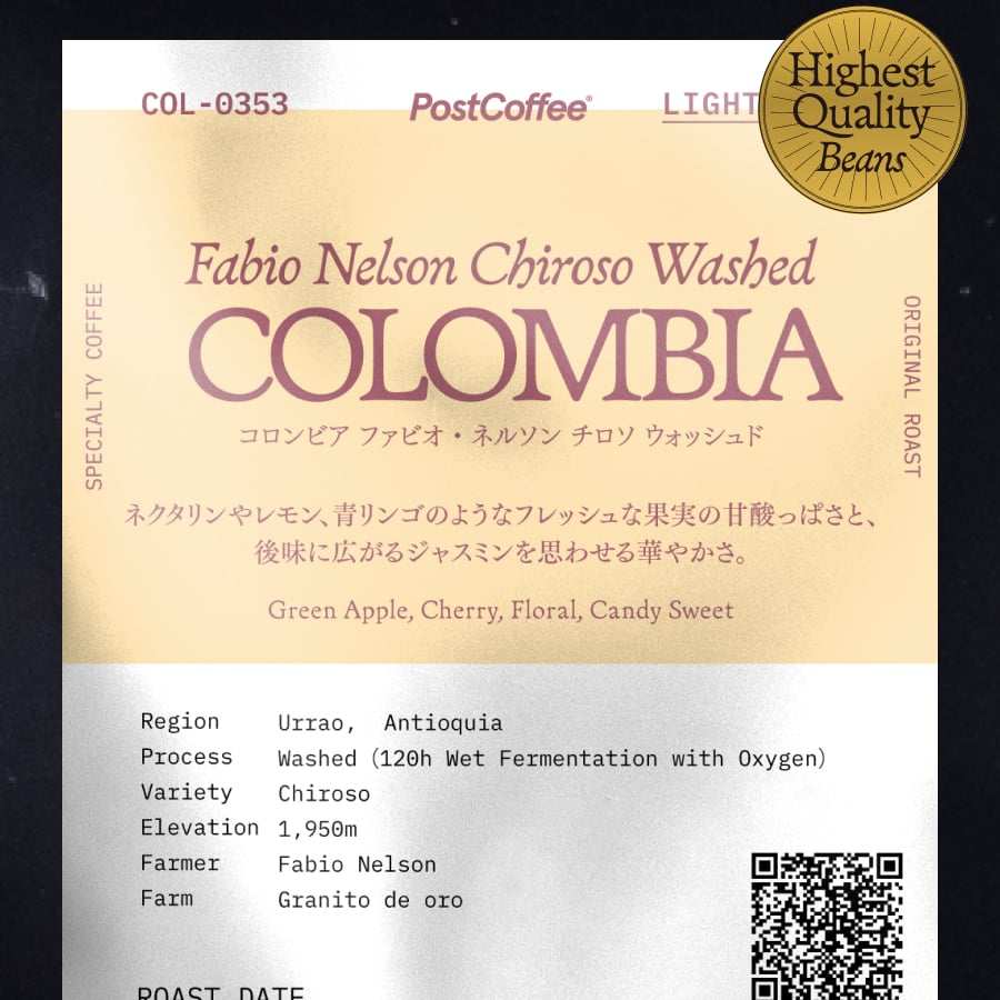 コロンビア ファビオ・ネルソン チロソ ウォッシュド