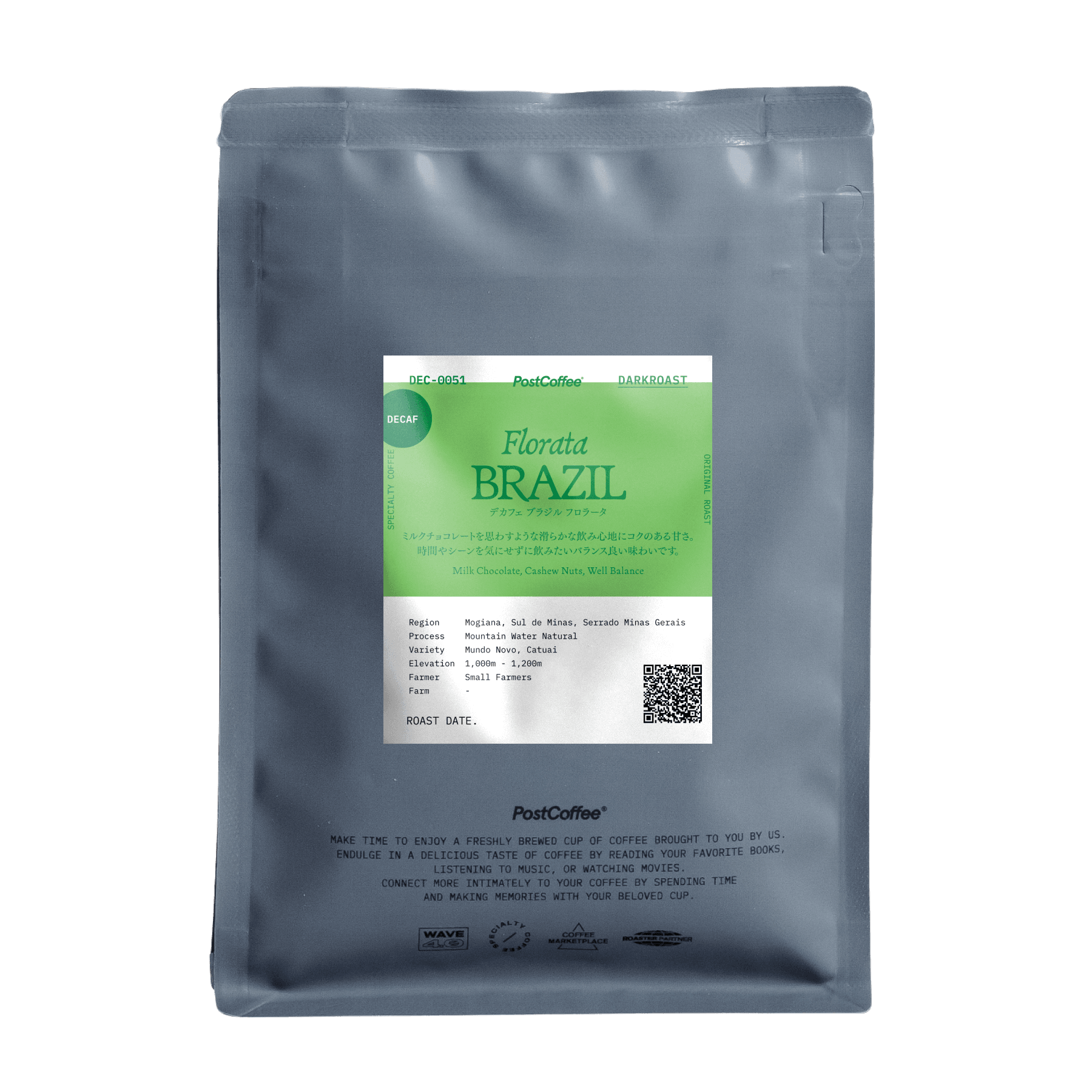 ブラジルの中でも比較的標高の高いミナスジェライス州の1,000m - 1,200mにあるいくつかの農園からロットを作り上げています。デカフェ処理はメキシコのデスカメック社で行っております、メキシコで最も標高が高いオリサバ山に湛えられた氷河の綺麗な水のみを使用して、薬品を一切使わずにデカフェイン処理を行い、輸出港にデカフェイン工場を所有しているのでコーヒーの適切な管理はもちろんのこと迅速な輸出手続きでコーヒーの鮮度を守ります。