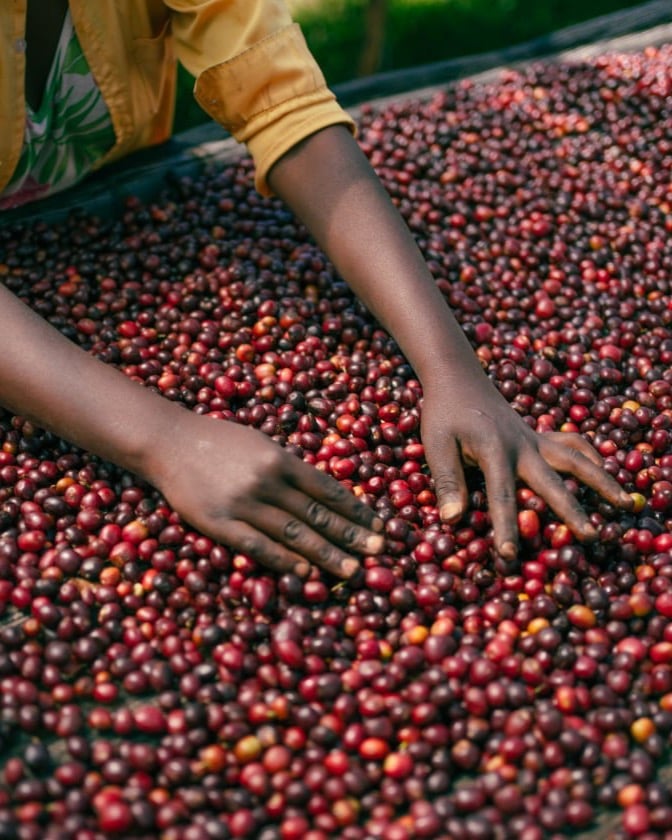 その後、チェリーはアフリカンベッドに広げられ、パラボリックシェードの下で約21日間かけてゆっくりと乾燥。均一な乾燥環境を保つことで、糖分とアロマをしっかりと閉じ込め、ナチュラルらしい豊かな風味を引き出しています。