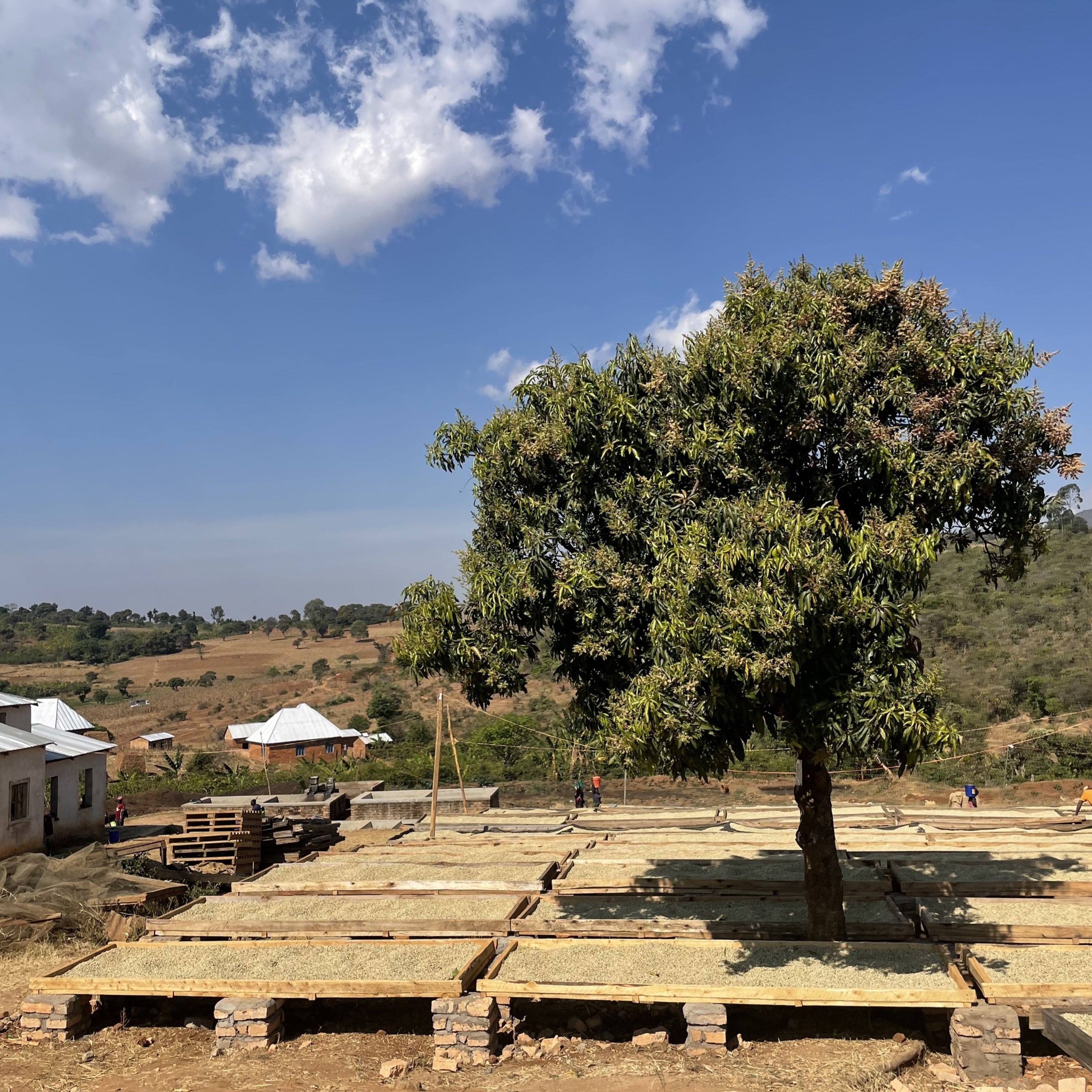 タンザニア南部ソングウェ,ンボジ地域に位置するイユラ村では、宣教師からの伝搬により1938年からコーヒーの生産が始まりました。いち早く精製設備を導入し、高品質生豆を高価格で販売することを黎明期から実践している組合です。完成度の高いコーヒーを毎年継続して生産しているこの生産者組合の秘訣は管理レベルの高いウォッシングステーションにあります。現在進行している工程とロット番号が逐一確認出来る仕組みとなっていることや、張り巡らされたフェンスによりしっかりと区画整理された中で精製を行っていることも意識の高さを裏付けています。