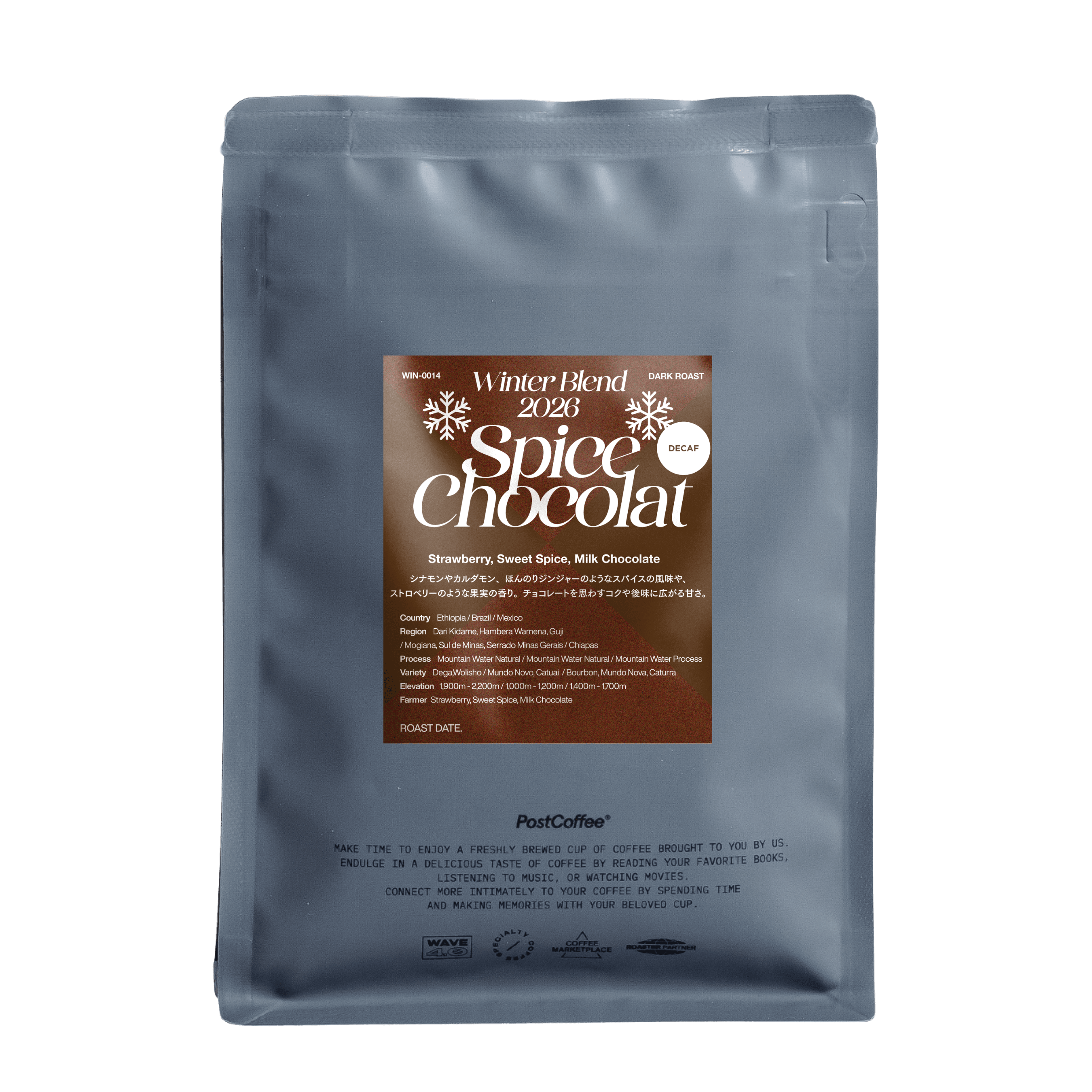 夜の時間に、ゆっくりとコーヒーを楽しみたくなる季節。冬のひとときに寄り添うデカフェブレンド「Winter Spice Chocolat」 は、チョコレートを思わせるコクに、シナモンやカルダモン、ほんのりジンジャーのようなスパイスの風味、そしてストロベリーを思わせる果実の香りが重なる、やさしくあたたかな味わいのウィンターブレンドです。