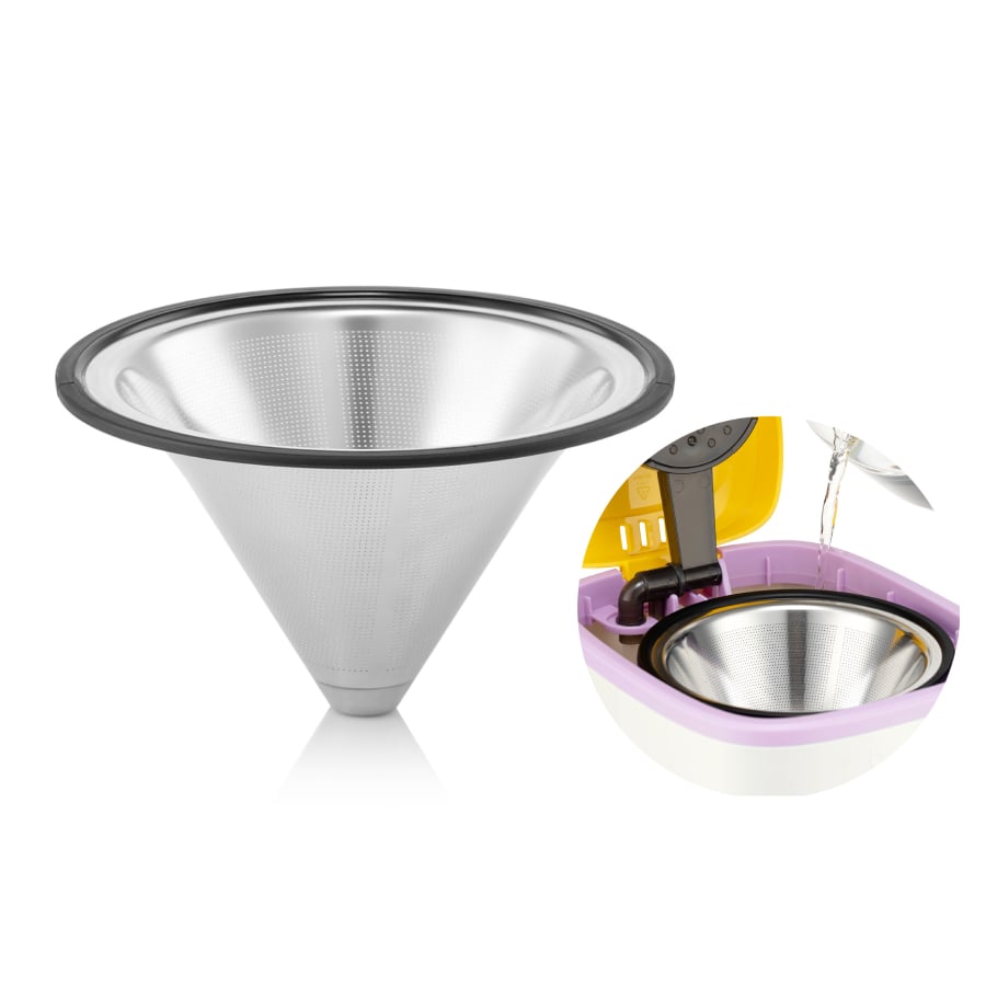 ・コクが深くアロマ豊かなピュアなコーヒーの味わいを生む、細かいメッシュのステンレス製フィルター。繰り返し使え、無駄なペーパーフィルターも不要。