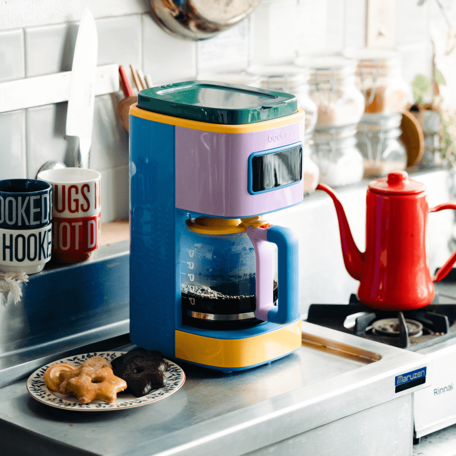 北欧・デンマーク発祥のBODUM (ボダム) は、1944年に設立された老舗キッチンウェアブランドで、コーヒーやティーの抽出器具を中心に、機能性と美しいデザインを両立させた製品を展開しています。MoMA (ニューヨーク近代美術館) は、世界有数の現代美術館であり、日常に取り入れられる洗練されたデザインを厳選したプロダクトを販売しています。1990年代に始まったBODUMとMoMAのコラボレーションでは、これまで様々なアイテムを展開してきましたが、今回のコレクションは、1970〜80年代に着想を得て、イタリア人建築家兼インダストリアルデザイナー、エットレ・ソットサスの色彩感覚をもとに、型破りで遊び心あふれる、はじけるような独特の雰囲気を表現しています。