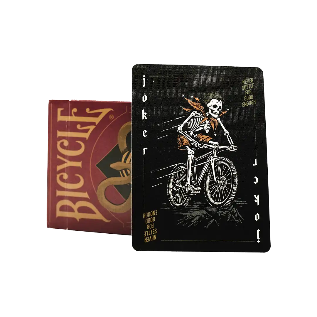 Bicycle(バイシクル)は、アメリカの老舗トランプブランドで、1885年創業のUSPCC(アメリカントランプ社)が手がけています。耐久性と扱いやすさに優れ、マジシャンやカードコレクターにも愛用される定番ブランドです。クラシックな「ライダーバック」デザインは世界的に有名で、コラボデッキも多数展開されています。