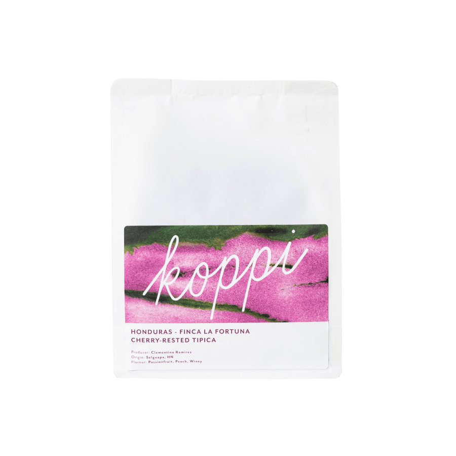 ホンジュラス・モンテシージョス山脈に位置するフィンカ・ラ・フォルトゥーナは、生産者クレメンティーノ・ラミレスが手がける農園。標高の高い冷涼な環境のもと、丁寧な栽培と精製によって、クリーンで複雑な風味のコーヒーが生み出されています。本ロットは「チェリー・レスト」と呼ばれるプロセスを採用。収穫したコーヒーチェリーの果肉をすぐに除去しないことで、果実の甘さや香りがゆっくりと種子へ移り、フルーティで奥行きのある味わいが引き出されます。Koppiによる繊細な焙煎により、ジューシーな果実感とやわらかな甘さが心地よく広がる一杯です。