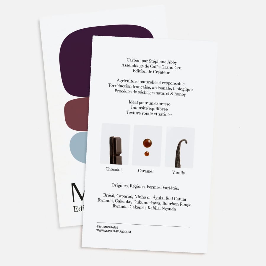 ステファン・アビーが手掛けたこのブレンドは、彼のルーツであるアビジャンの焚き火の記憶と、パリのマレ地区にある直火料理レストラン「Carbon」の哲学が融合した一品です。「混ぜること」を信条とする彼が、MOMUSのために3つの大陸を繋ぎ、直火料理のように素直で本質的な味わいを表現しました。スパイシーさとフローラルな力強さに、チョコレートやバニラ、キャラメルの甘いニュアンスが重なり、仕上げには自身のルーツへのオマージュとしてルワンダ産の希少品種「ンガンダ」を配合。産地の物語と情熱が重なり合う、エモーショナルな体験を届けるブレンドです。