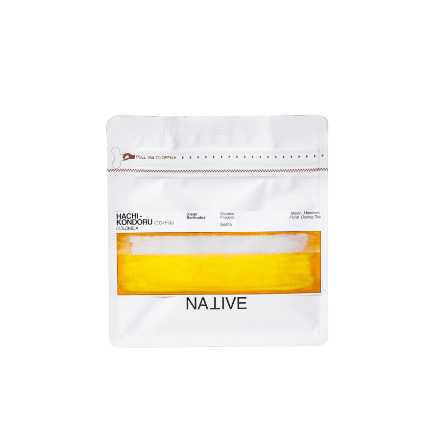 「コンドル」は、Nativeが展開する「ハイパーリミテッド」シリーズの中で、最上位にあたる第5層の特別なコーヒーです。世界的に知られる生産者ディエゴ・ベルムデスとNativeのコラボレーションによって生み出されました。使用されるチェリーは、ディエゴが手がける「HACHIエステート」で厳選されたもの。100%ウォッシュドのゲイシャで、メロンやマンダリンを思わせる華やかなフレーバーが際立ち、香りには繊細なフローラルが広がります。 ※非常にライトローストで仕上げられているため、飲み頃まで休ませることが推奨されています。Nativeでは最低5週間のエイジングを推奨しており、最もピークに達するのは7〜9週間頃とされています。