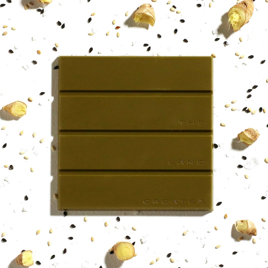 原材料名: 有機ココアバター、有機きび砂糖、全粉乳(乾燥)、有機抹茶パウダー、ごま(黒ごま/白ごま〈焙煎〉)、海塩、ジンジャーハニークリスタル