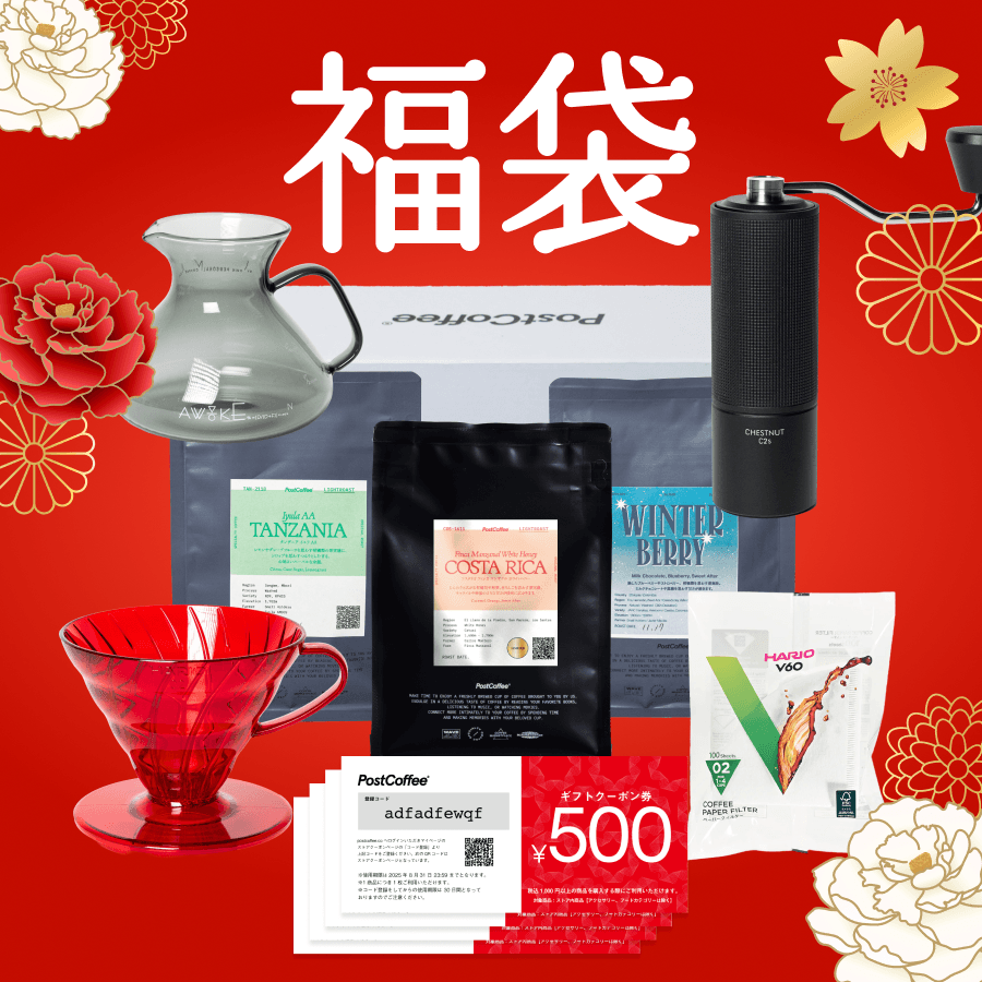 毎年ご好評いただいているPostCoffeeの福袋、今年はさらにパワーアップ! 全4種類のラインナップで、より幅広いニーズにお応えします。 お得に美味しく新年を彩る2種類の「コーヒー豆福袋」をはじめ、どこでも手軽に楽しめる「ドリップバッグ福袋」、そして届いたその日から充実したコーヒー時間を始められる「スターター福袋」まで、多彩な内容をご用意。 一年の感謝を込めて、どれも“超お得”で大満足のボリュームに仕上げています。2026年のコーヒーライフを、ぜひ福袋でお楽しみください。