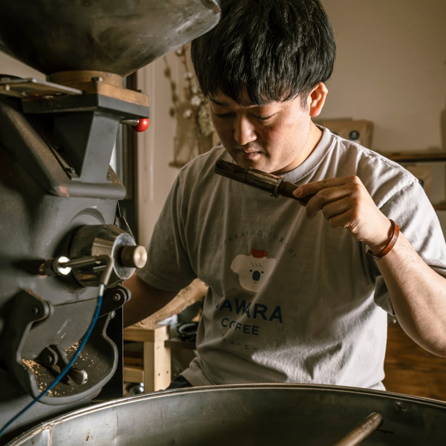 2018年、関東でサラリーマンをしていた頃にふらっと入った自家焙煎珈琲店で焙煎に魅了される。2018年5月~9月レコールバンタンキャリアカレッジ ロースト&ドリップコースに通う。講師はPassage coffeeの佐々木修一さん。その後地元十勝にて、父親の牧場で働きながら独学でコーヒーを学ぶ。2021年にQ Arabica graderの資格を取得し、イベント出店から初めて2022年8月帯広市で開業。