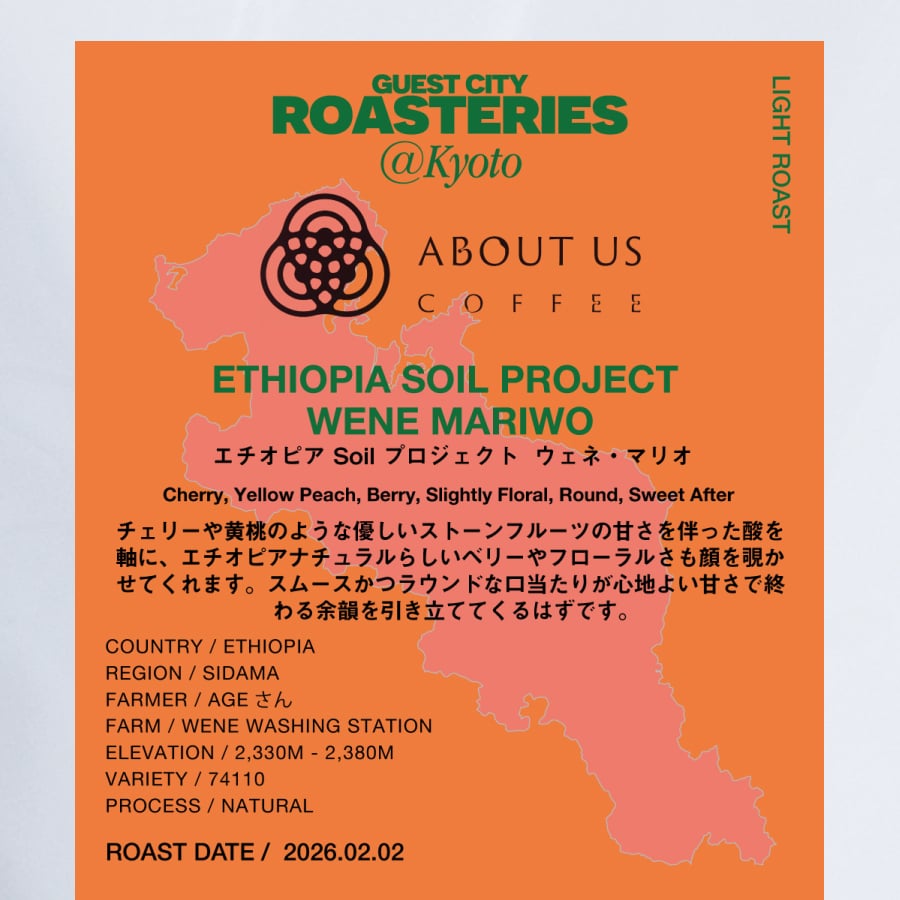 まだ若い農園ではありますが、ブラックソイルという希少な環境と、Ageさんの情熱、そしてTri-Up社の継続的なサポートによって、Weneは今後エチオピアを代表する農園のひとつになる可能性を秘めています。“今まさに育っている農園の現在地”を味わえる、そんなストーリーを持ったコーヒーです。