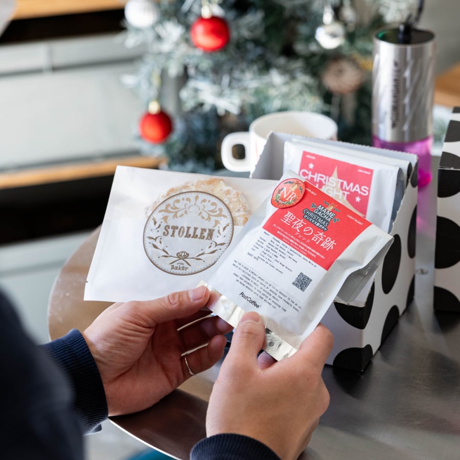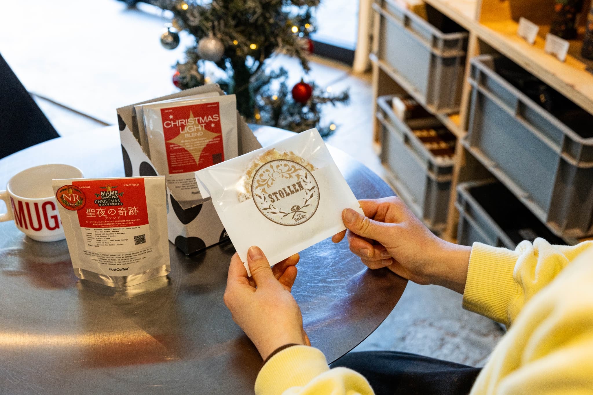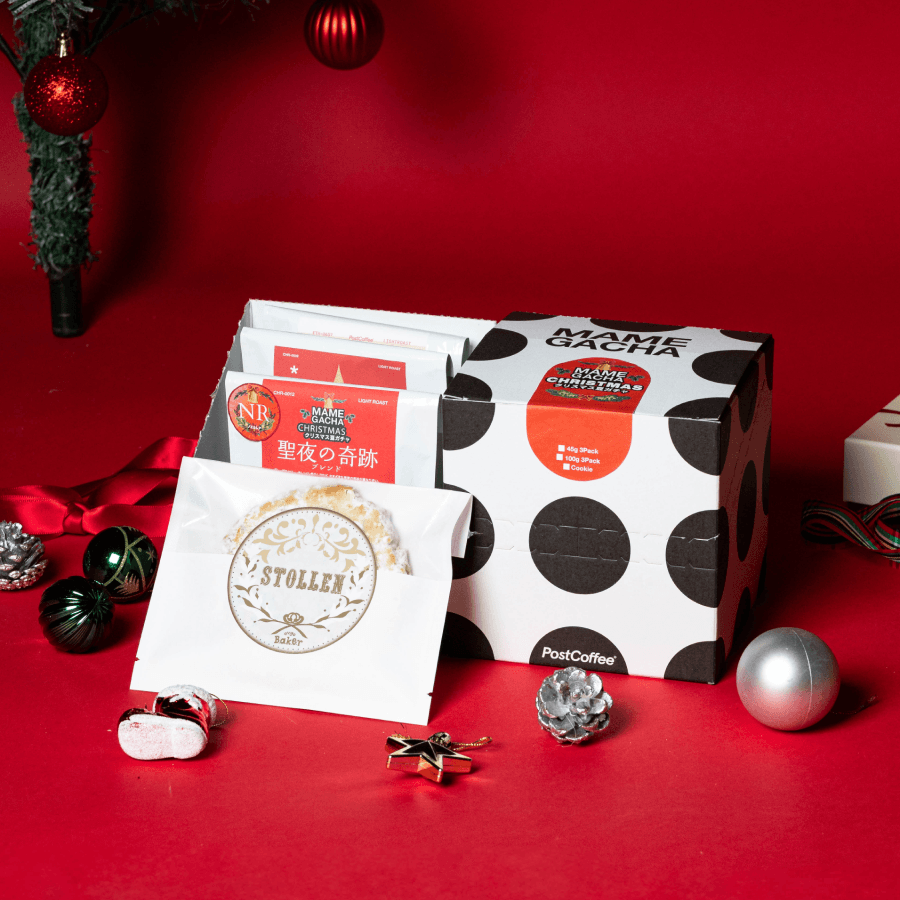 PostCoffeeで取り扱う50種類以上の個性豊かなスペシャルティコーヒーとスペシャルクッキーを詰め合わせた「Xmas限定コーヒー豆ガチャ」。