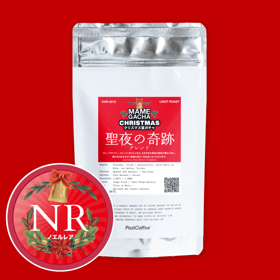 ここでしか手に入らないXmas限定レア豆を3種ご用意!最上級グレード “NR (ノエルレア)” は、Xmasガチャ限定レアグレード。どれも希少な生豆を贅沢に使用したユニークなブレンドです。どんなレア豆が届くか、開けた瞬間の“高揚感”も、コーヒー豆ガチャの楽しさのひとつです。