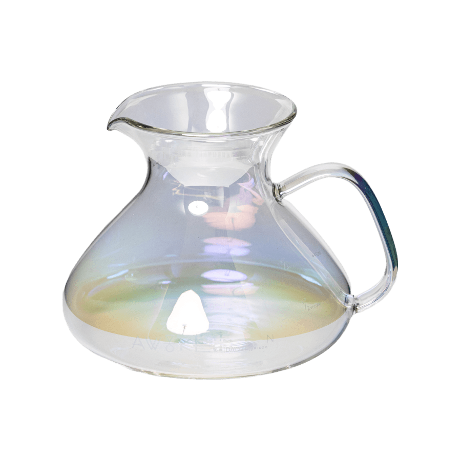 MUVNA Awake サーバーは、細いトップと広いボトムの注ぎ口を採用することで、容量を増やし、振った際のこぼれを最小限に抑えます。バイオニック注ぎ口は、コーヒーをスムーズに注ぎ、精密な水流のコントロールを可能にします。クリア、ブラック、 レインボー の3色展開。洗練されたデザインと使いやすさで、コーヒーの時間をより特別に。