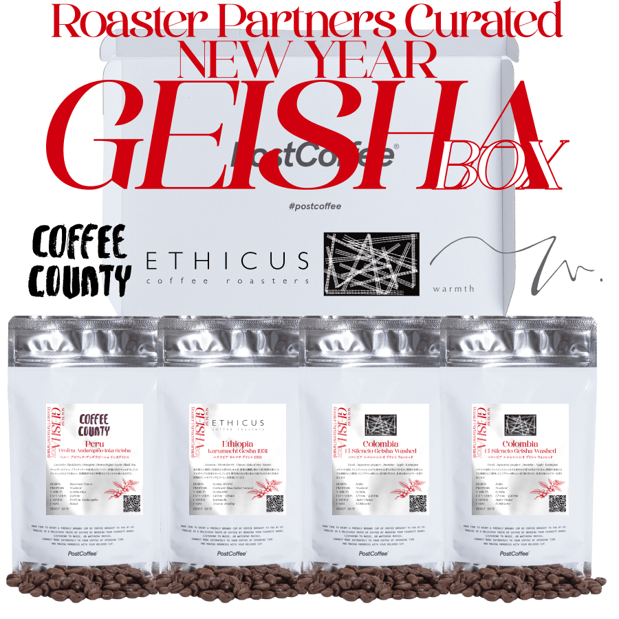 「NEW YEAR GEISHA BOX」は、PostCoffeeのロースターパートナーから届いたゲイシャ種のコーヒーを、一箱に詰め込んだ超贅沢な限定セレクションです。